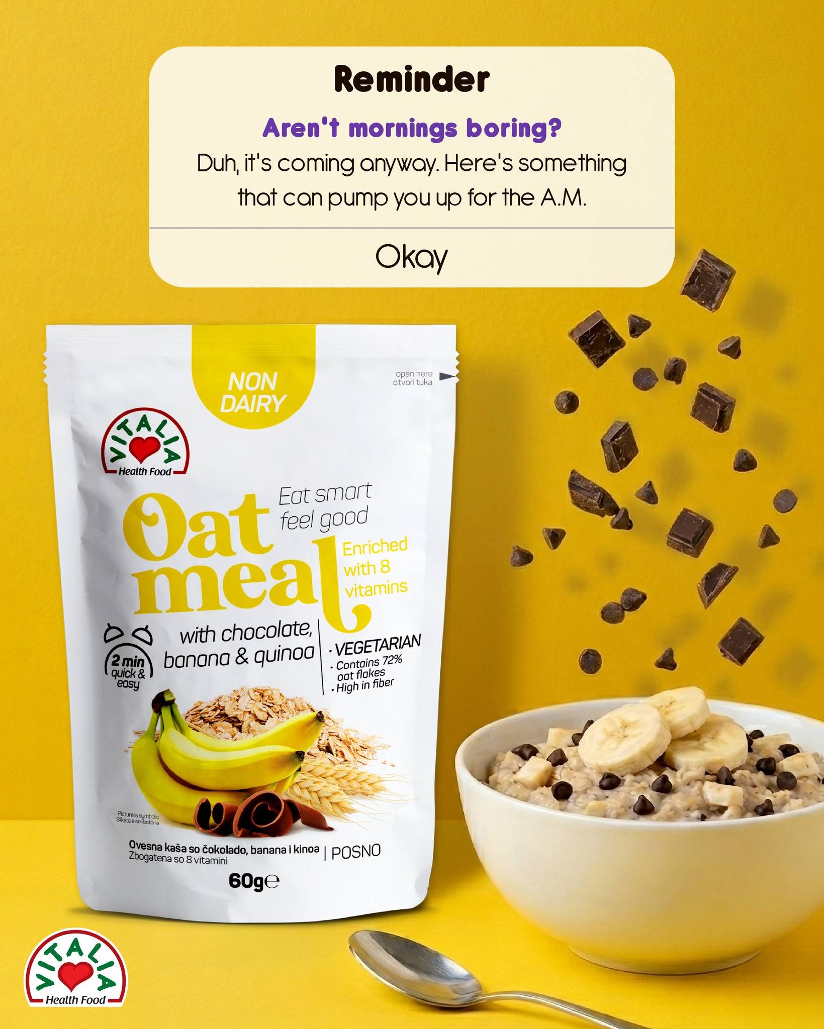 Здравите производи на Виталиа се секогаш тука, а со нив, подготвувам брзи и здрави оброци кои се лесни за јадење, а реално ја одржуваат мојата енергија на високо ниво.